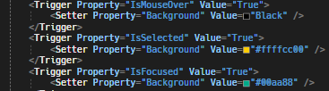 <Setter Property="Background" Value="#ffffcc00" />