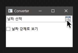 Target인 TextBlock객체의 Visibility 속성 값 타입과 Source인 DatePicker객체의 SelectedDate 속성 값 타입이 서로 다르지만ShowConverter로 인해 자연스레 작동할 수 있게 되는 것이다.