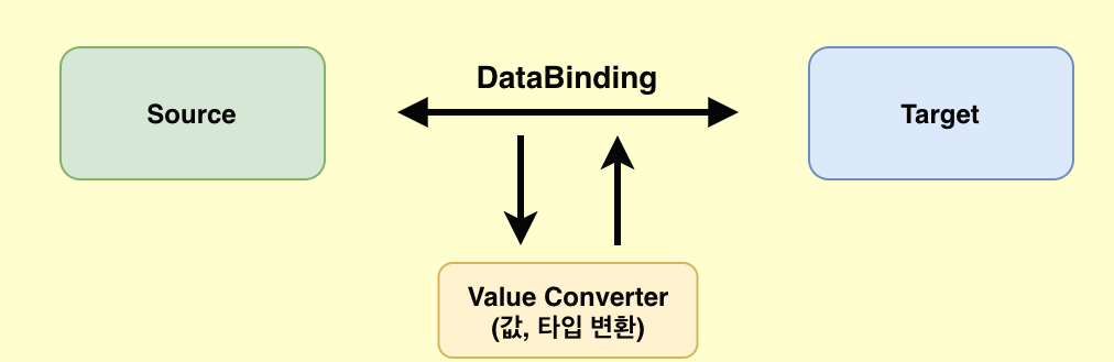 Value Converter는 값 변환을 진행한다. 이는 사용자가 직접 형변환 코드를 삽입하거나