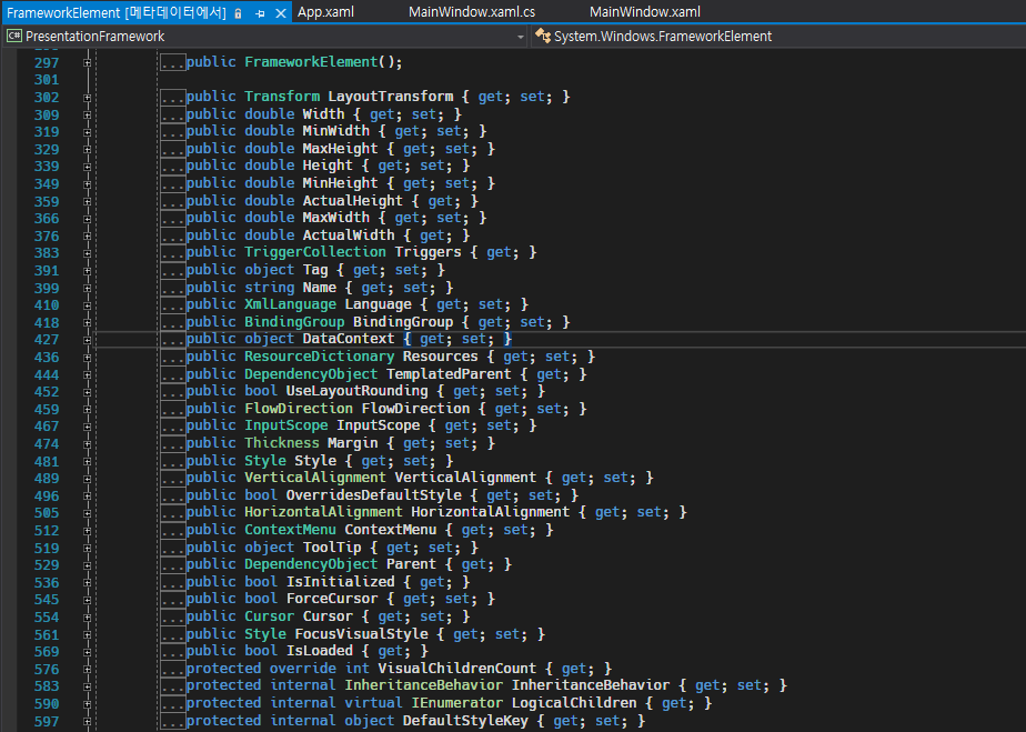 xaml 에디터에서 해당 속성에 캐럿을 가져다 대고 F12 정의 보기를 통해 해당 속성 타입을 확인할 수 있다.