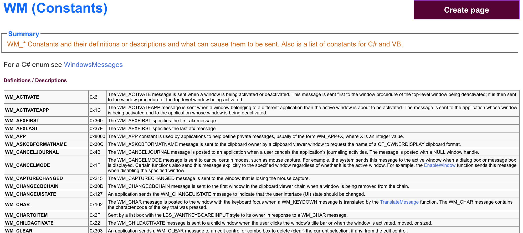 다음 링크에서 WndProc에서 처리하는 윈도우 메시지 전체 목록을 확인할 수 있다.