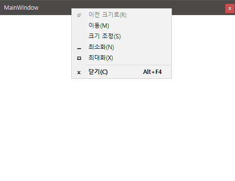 WPF 창에 WndProc을 연결했으니 NonClientArea를 우클릭했을 때 나오는 기본으로 적용된 ContextMenu를 없애야 한다.