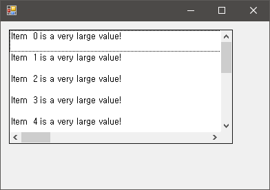 아이템의 텍스트 폭보다 적은 HorizontalExtent 속성 값을 설정하게 되면 수평 스크롤바는 나타나지 않을 것이다.