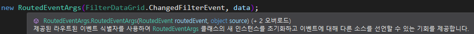 등록한 이벤트에 RoutedEvent에 대한 Args 정보를 등록했었다. (당연히 호출시 해당 타입의 Args를 매개변수로 넘겨줘야 한다)