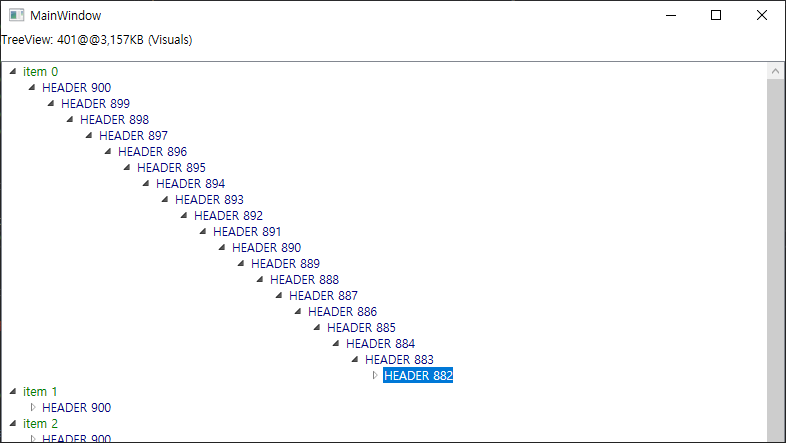 정확히 말하자면 트리 깊이 제한보다는 WPF Visual Tree Stack이 Over되어 튕기는 것입니다.