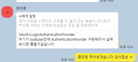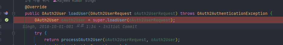 loadUser 메소드가 호출되기 직전에 OAuthLoginAuthenticationProvider 클래스 내에