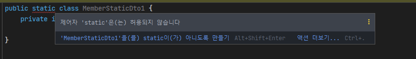 아래에서 MemberBaseDto가 outer class(외부 클래스) MemberCreateDto가 inner class(내부 클래스)이다.