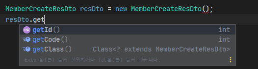 BaseMemberDto가 가지고 있는 getCode()를 자식 인스턴스(resDto)에서 접근할 수 있다.