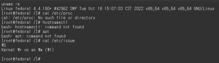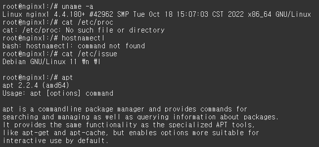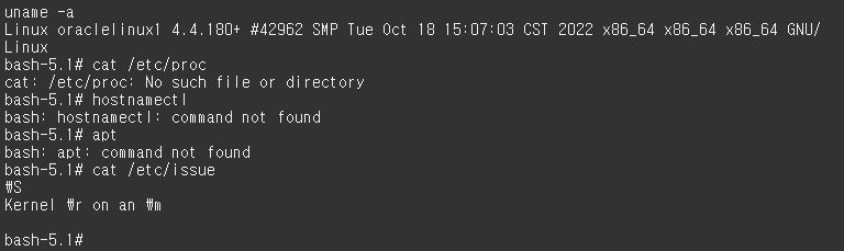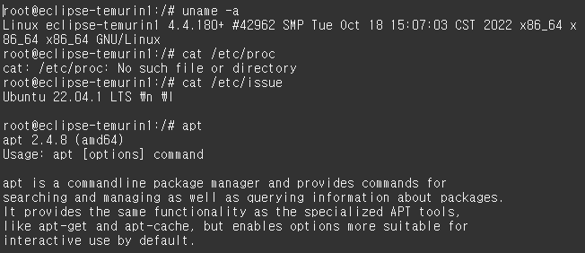 apt 명령어 사용도 안되고 uname, cat 명령어를 사용하여도 커널을 확인할 수 없었다.