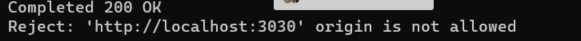 http://localhost:3030에서 요청이 들어왔고, 스프링 cors origin에 추가된 것이 없어 reject가 되었다는 로그이다.