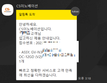 CS 이노베이션에 자동으로 접수가 되면 카카오톡으로 알아서 날라온다.